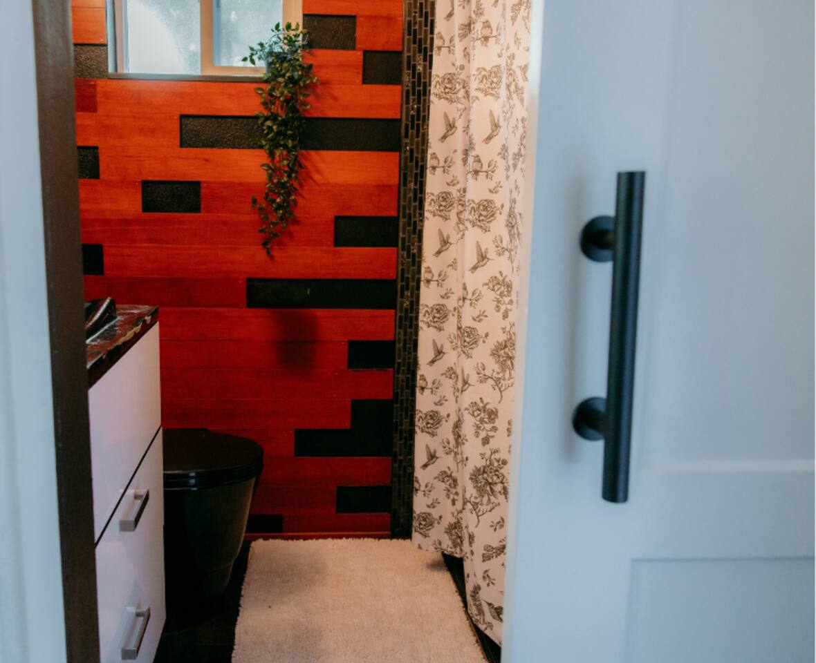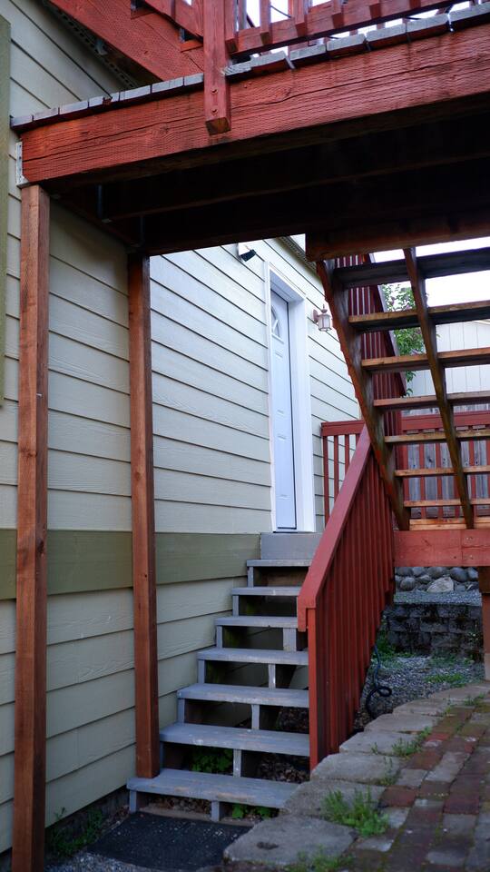 You will be staying in a detached guest suite in the backyard of the property. You will need to walk down a small set of stone steps and up a small set of wooden stairs to access the unit. There is wooden deck that connects the guest suite to the roof top patio, as well as connects to the main home on the property, but it will be used exclusively by you during your stay. Just so you are aware, there is an entrance to another suite which is part of the main house in the backyard where people may come and go.